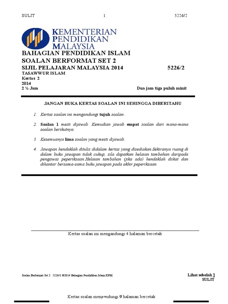 Related : Pendidikan Islam Tingkatan 4 Kertas 2 : Skor a+ kertas model spm pendidikan islam kertas 1 & 2..